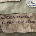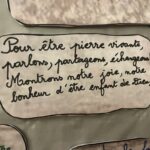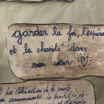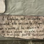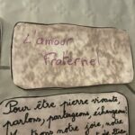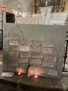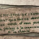 Geste: au moment du partage d’Evangile, chaque personne reçoit une « pierre » en carton sur laquelle elle note soit