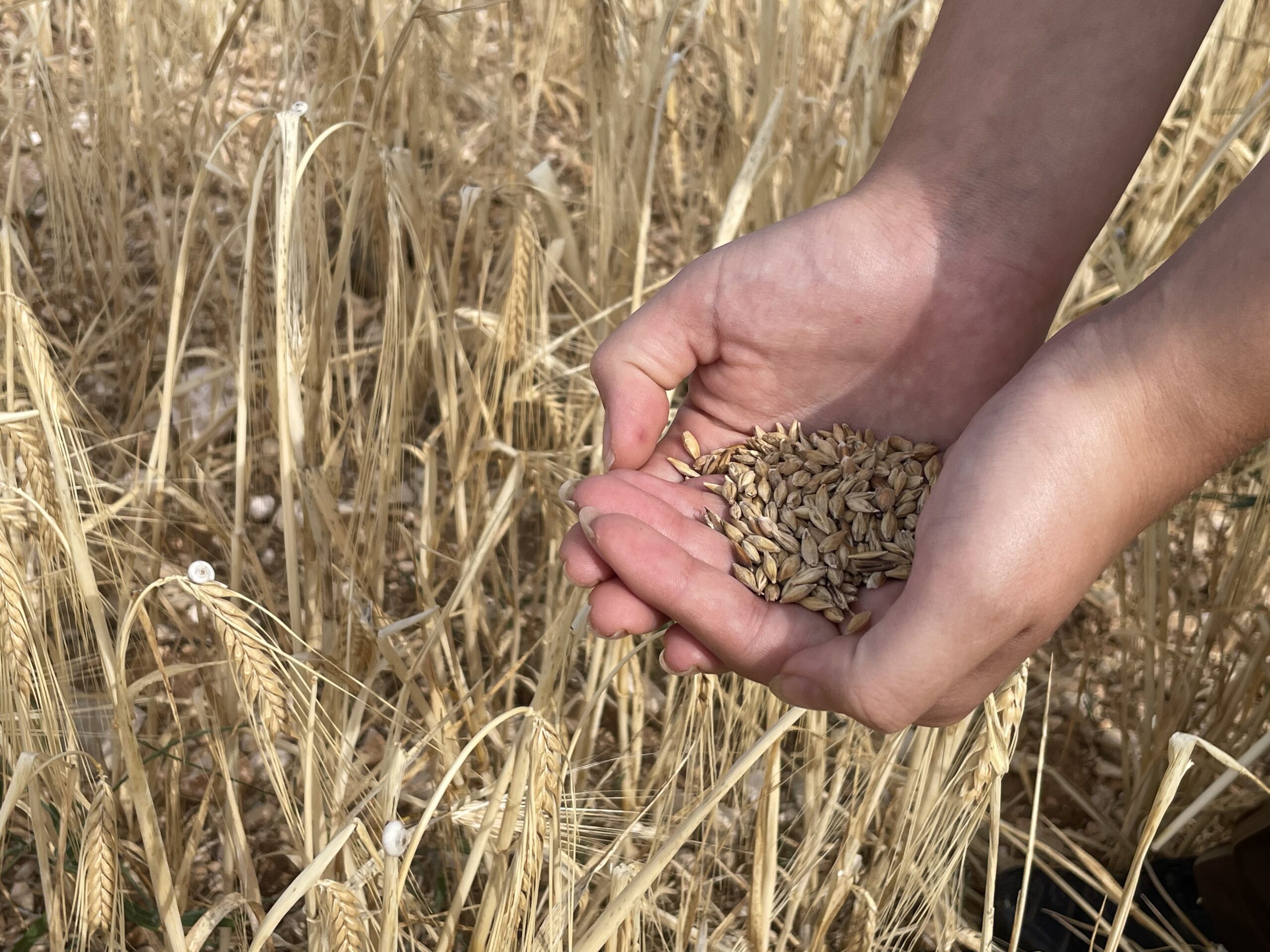 Le visuel choisi pour cette célébration était une photo de mains ouvertes dans un champ de blé, la phrase « être riche en vue de Dieu », une croix, une bougie, et un bouquet de fleurs.
